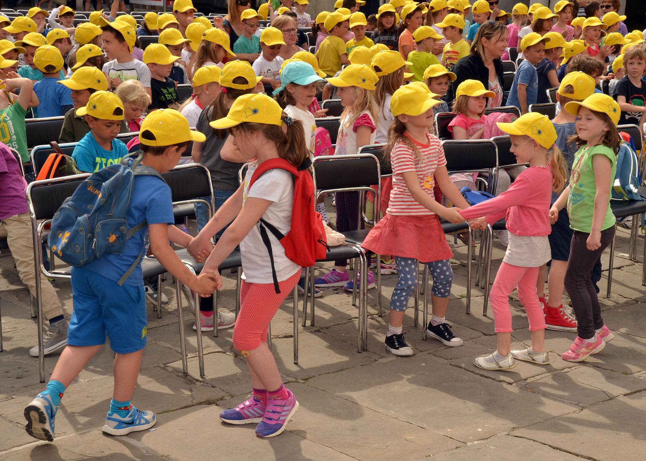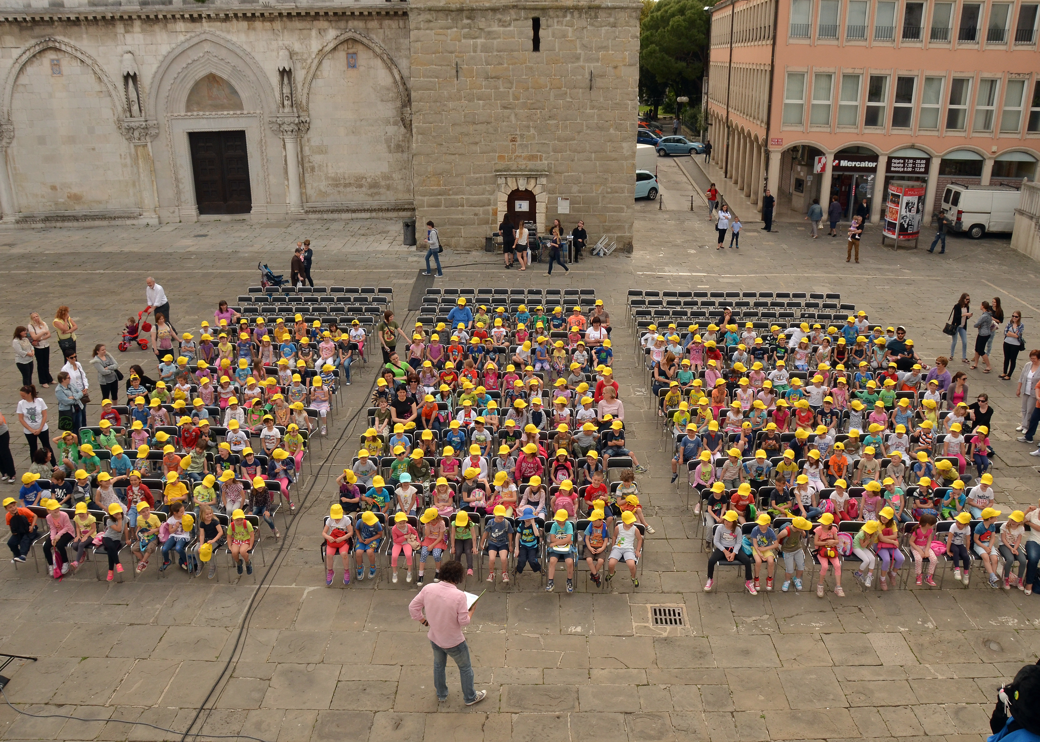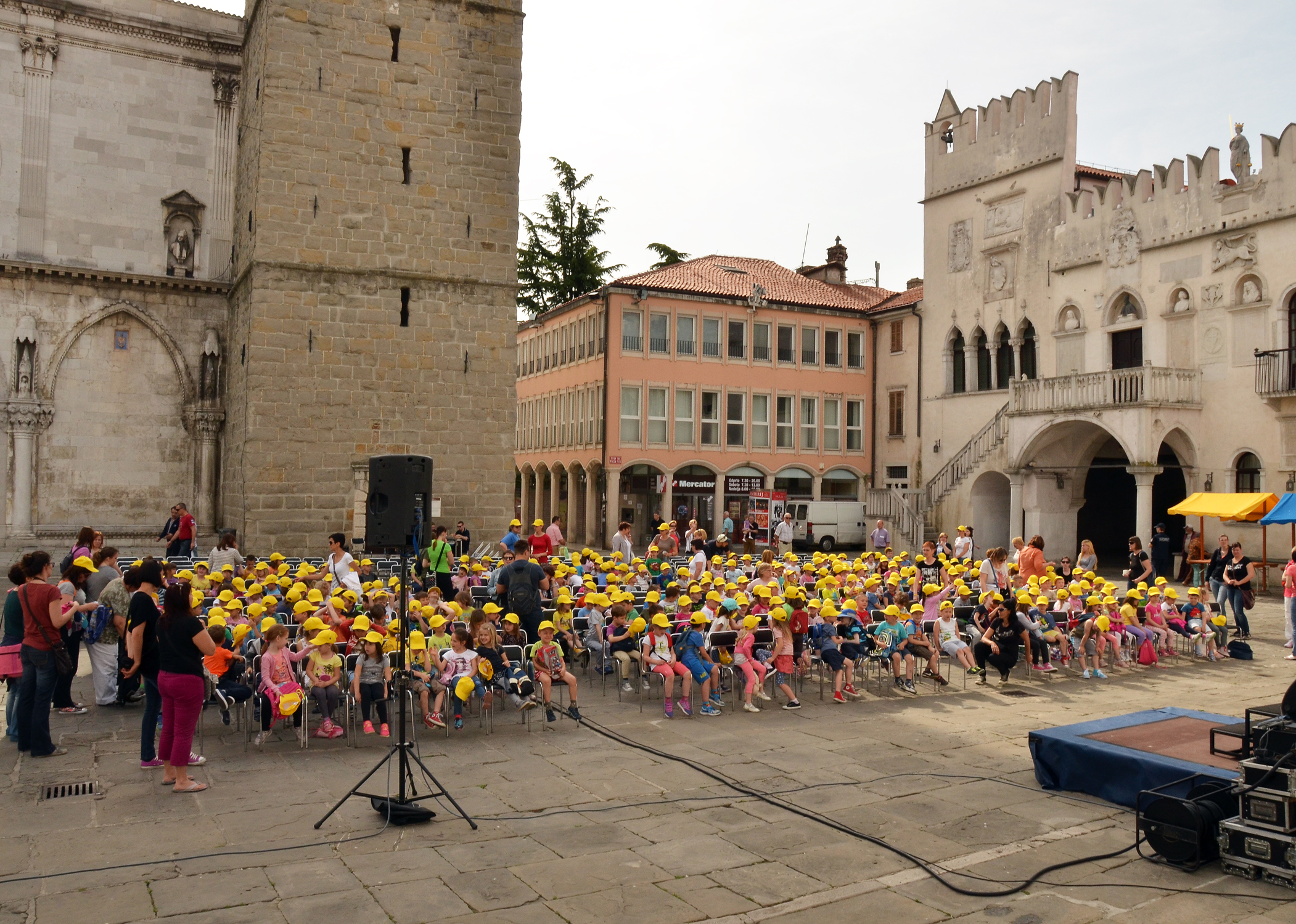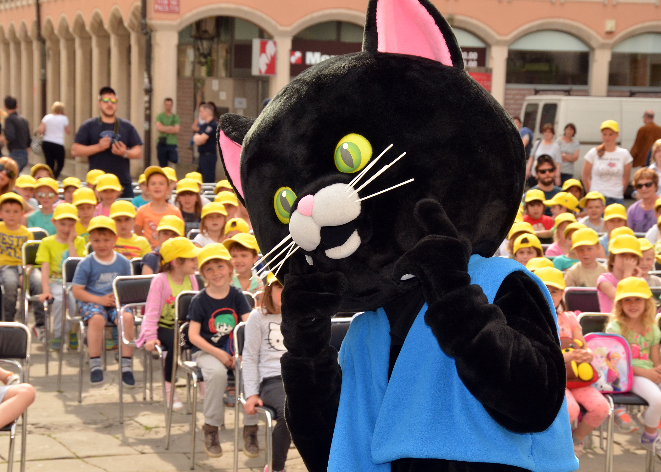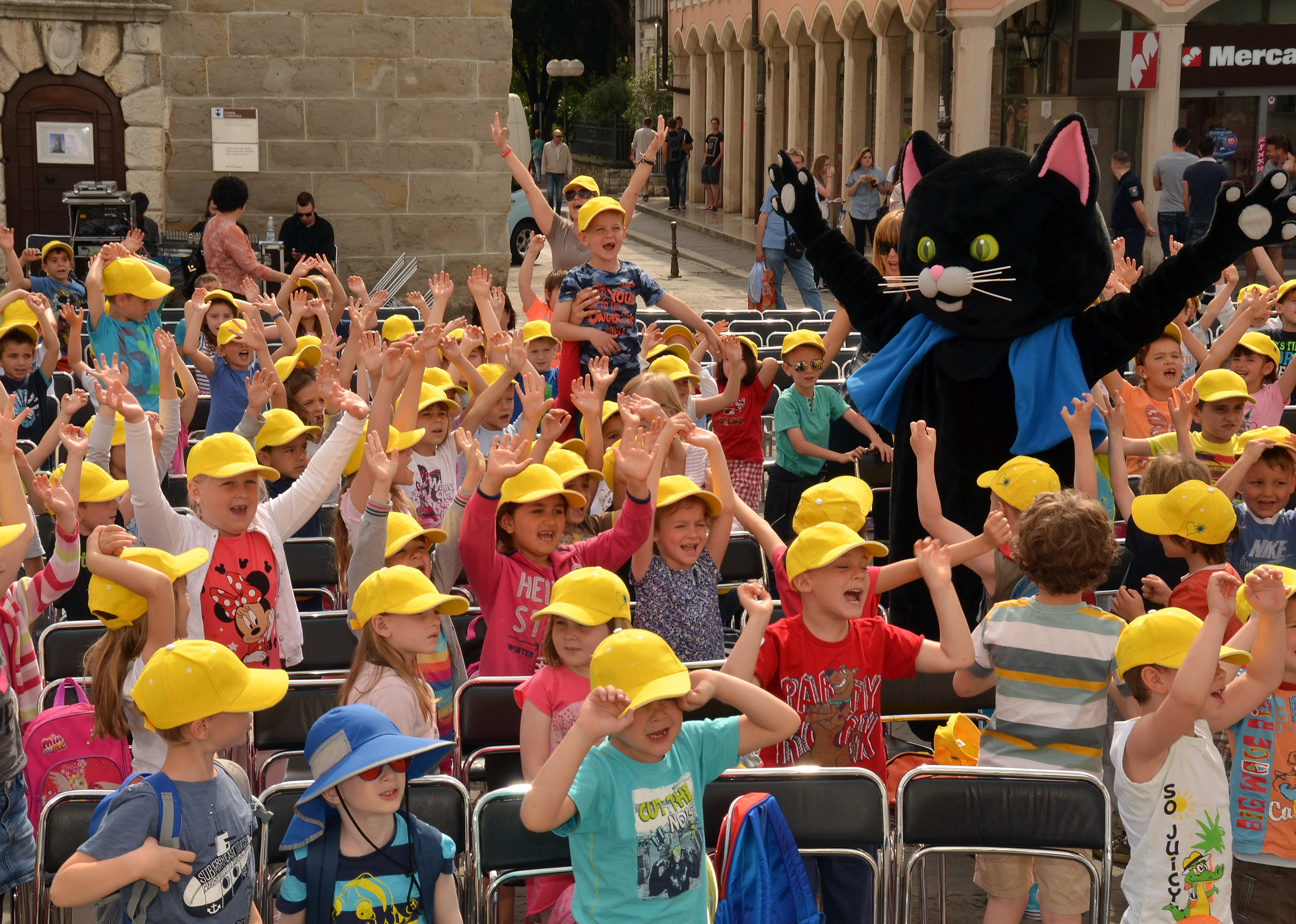 Tako je danes, 13. maja, Titov trg preplavilo več kot 600 predšolskih otrok iz vseh vrtcev v Mestni občini Koper. Mladi nadobudneži, ki jim je občina ob svojem prazniku podarila rumene kapice, sokove ter poklonila avtobusni prevoz in predstavo, je uživala ob zabavnem programu, ki je minil v znamenju legendarnega pravljičnega junaka mačka Murija, ki letos praznuje kar 40 rojstni dan. Igor Leonardi in Ana Vipotnik sta s pesmimi Kajetana Koviča o mačku Muriju, muci Maci in ostalih junakih iz Mačjega mesta med otroki pričarala praznično vzdušje. Malčke pa je z izseki pripovedk o mačku Muriju razvedril tudi priljubljeni primorski voditelj Tomaž Klepač. Na trgu seveda ni manjkala niti maskota priljubljenega črnega zelenookega muca, s katerim so danes nastale številne fotografije.