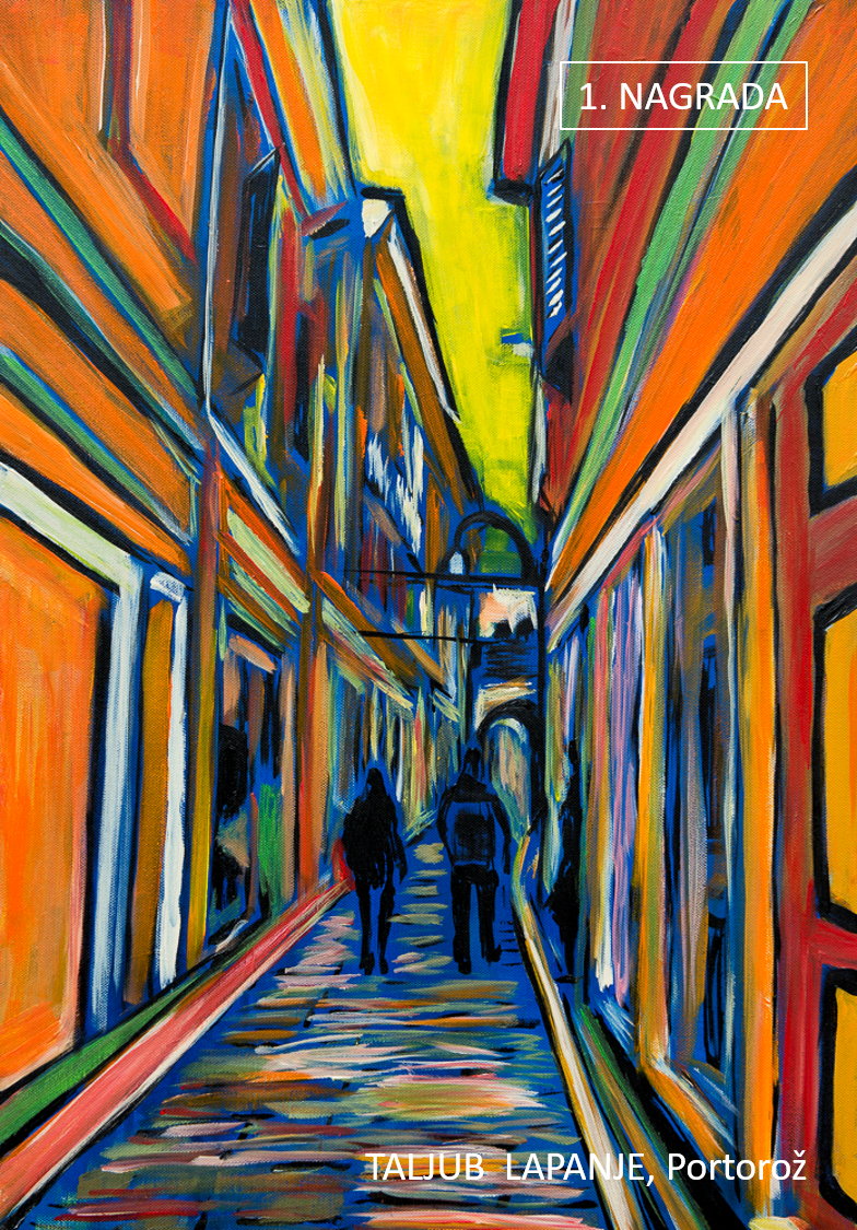 Taljub Lapanje iz Portoroža je za ekspresivni prikaz sprehoda v senci ulice prejel prvo nagrado. Igra toplih in hladnih barv govori o avtorjevem intimnem doživljanju žanrskega prizora skozi netipični modulacijski prikaz prostora.
