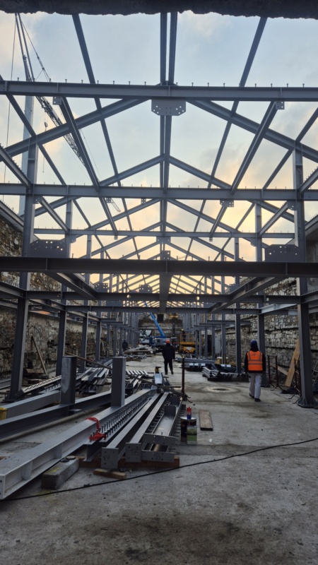 Mestna občina Koper pospešeno nadaljuje prenovo nekdanjega skladišča soli Libertas. Po izvedbi rušitvenih del, izkopov in arheoloških izkopavanj, ki so prinesla tudi nova spoznanja o zgodovini Kopra, je izvajalec del, podjetje Makro 5 gradnje, namestil novo nosilno jekleno konstrukcijo, pravkar pa izvaja dela na strehi.