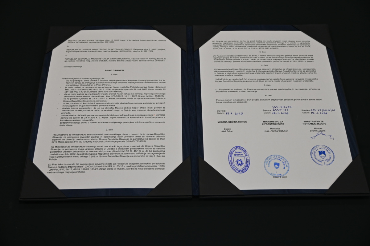 Poleg tega sta župan Bržan in ministrica Bratušek podpisala pismo o nameri o zagotovitvi priveznih mest za plovila Policije in Uprave RS za pomorstvo. Pismo o nameri, ki ga je že predhodno podpisal tudi minister za notranje zadeve Branko Zlobko, je namenjeno usklajevanju postopkov za določitev drugega območja mejnega prehoda za mednarodni morski promet. Ta bo svoj prostor namesto v koprskem mestnem pristanišču dobil na območju pred upravno stavbo Uprave RS za pomorstvo. Mestna občina Koper bo tako izpraznjeno območje v koprskem mestnem pristanišču lahko dolgoročno namenila komunalnim in turističnim privezom.