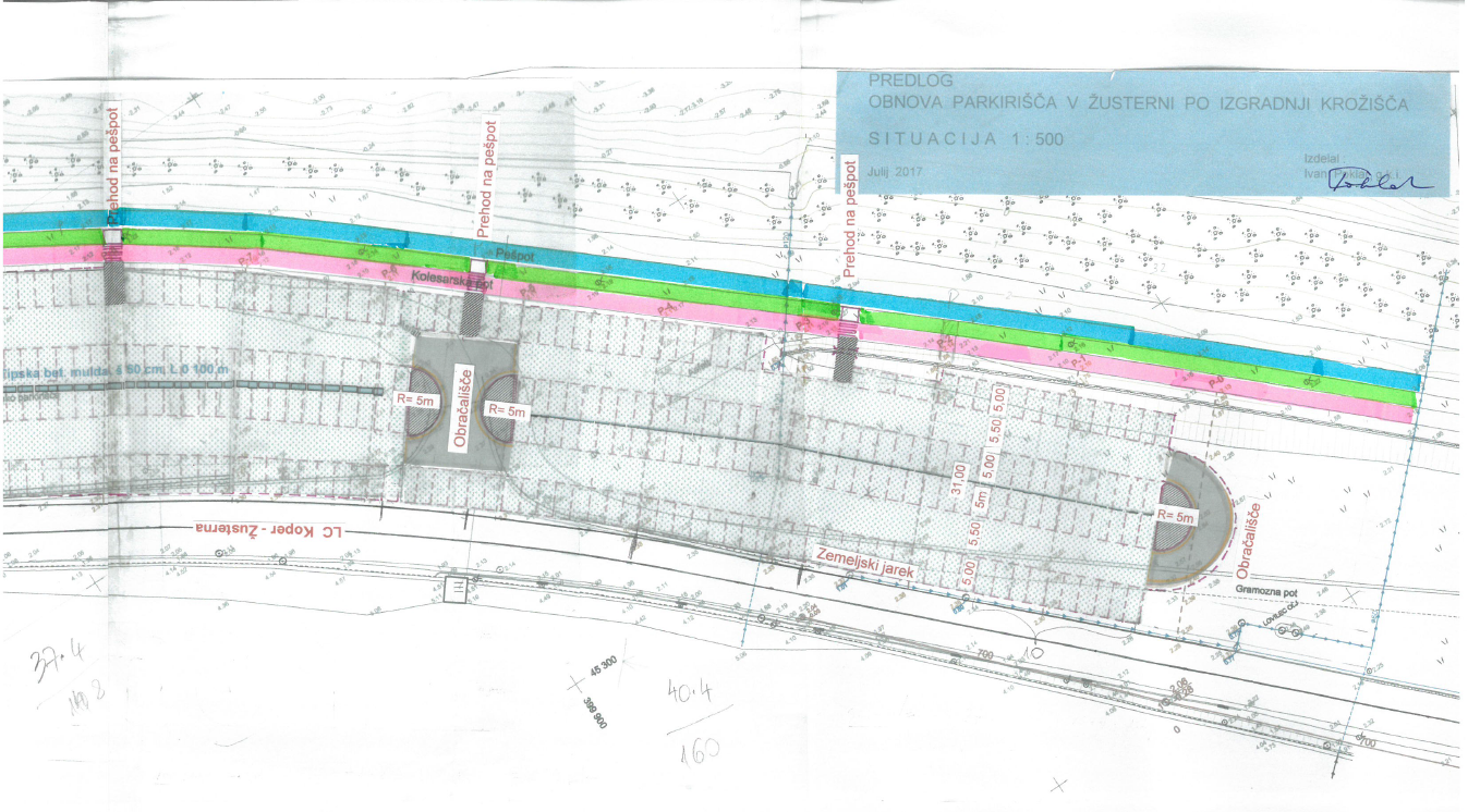 Poleg tega bo med starim in novim delom parkirišča, na območju nekdanjega uvoza na parkirišče, vzpostavljeno obračališče. Obračališče, ki bo olajšalo parkirne manevre, bo urejeno tudi na koncu parkirišča (proti Semedeli). Ko bo naložba sklenjena bo parkirišče v Žusterni lahko sprejelo do 300 avtomobilov.