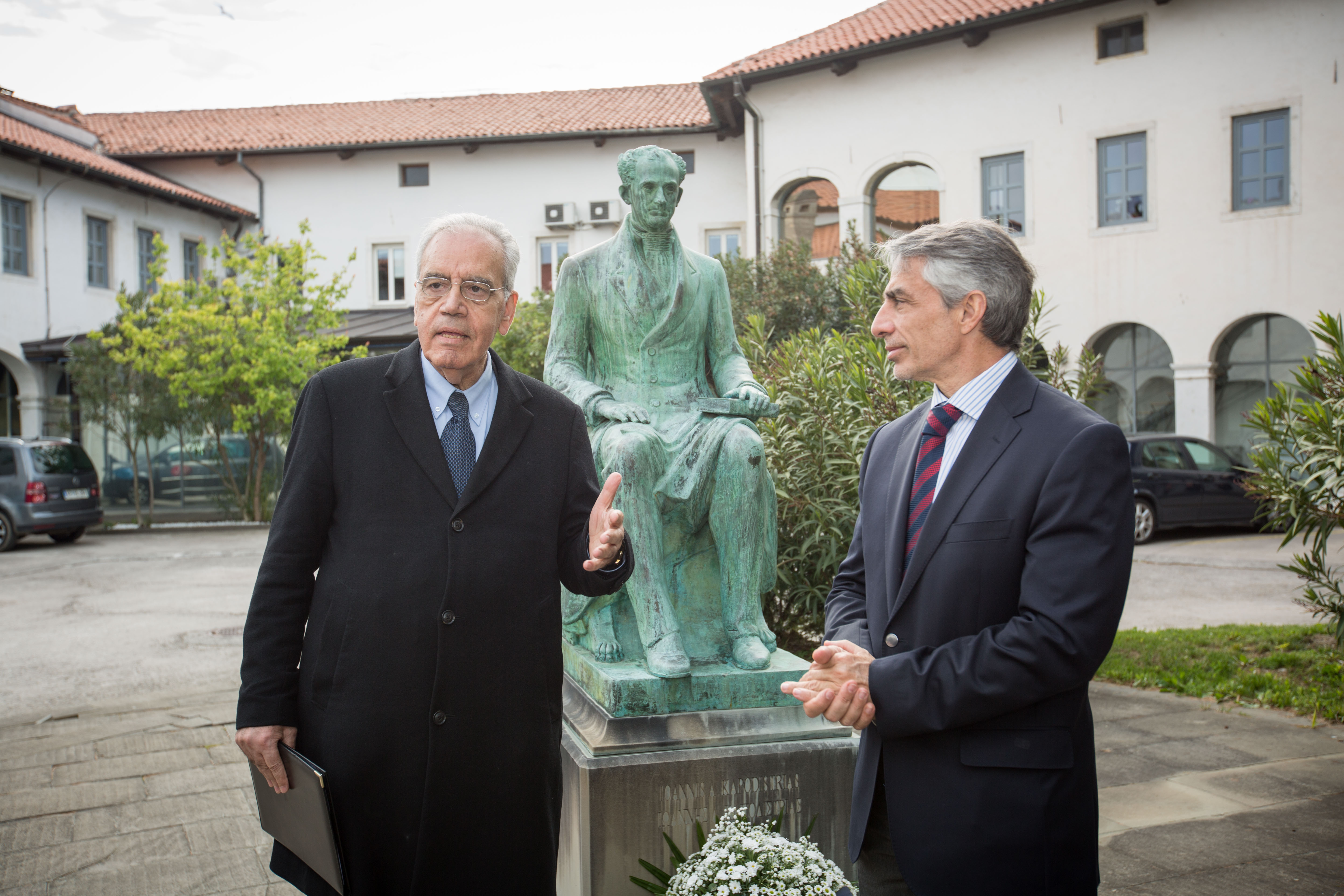 Bronast kip Kapodistriasa v naravni velikosti (delo grškega kiparja K. Palaiologosa), ki stoji na istoimenskem trgu sredi Kopra, je leta 2001 Grčija podarila Sloveniji oziroma Kopru. *