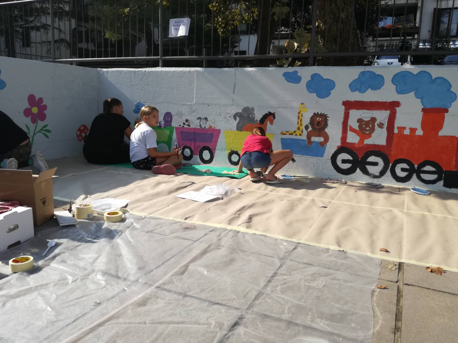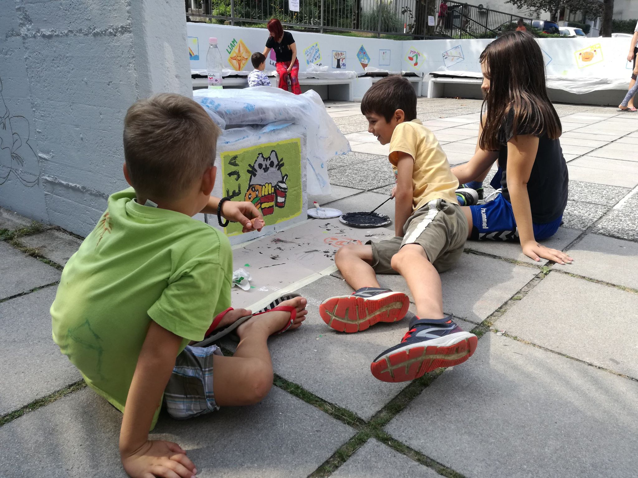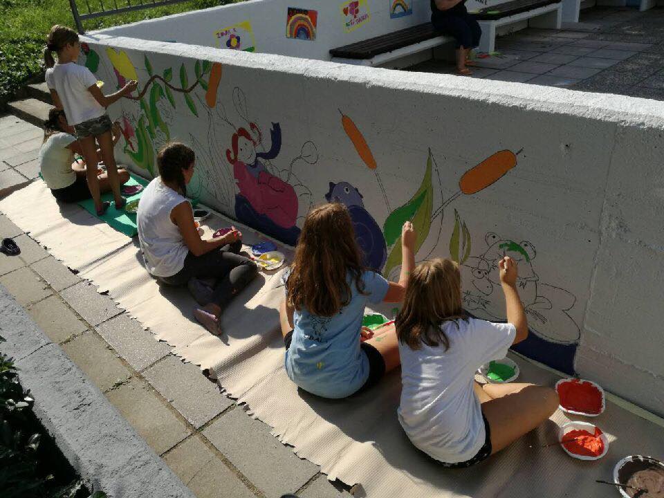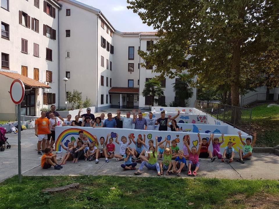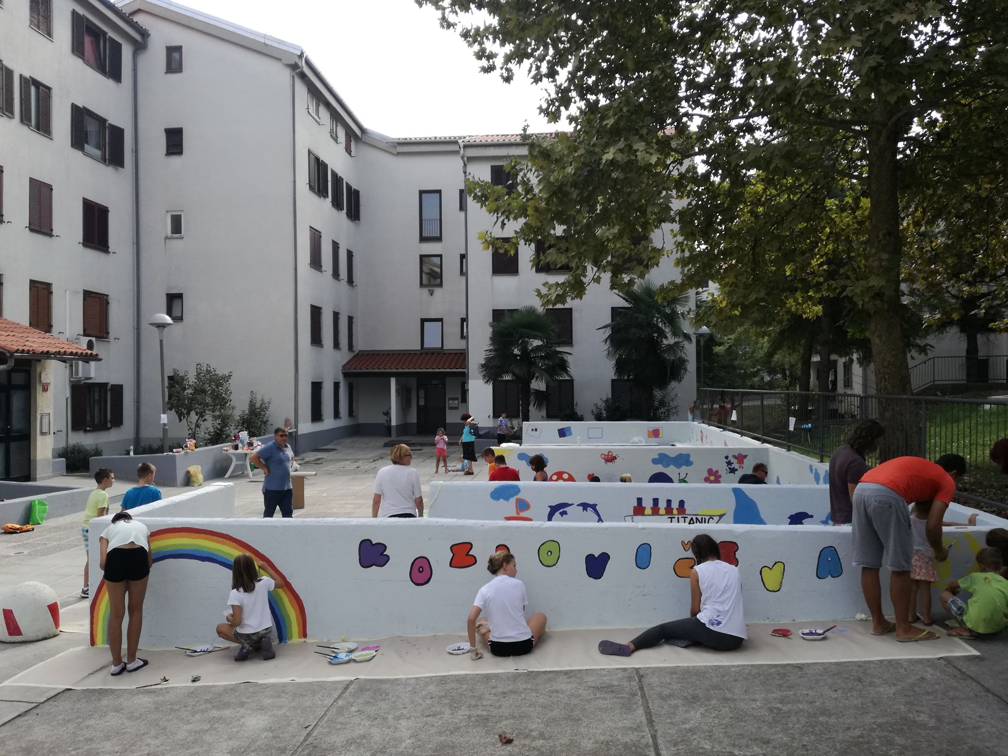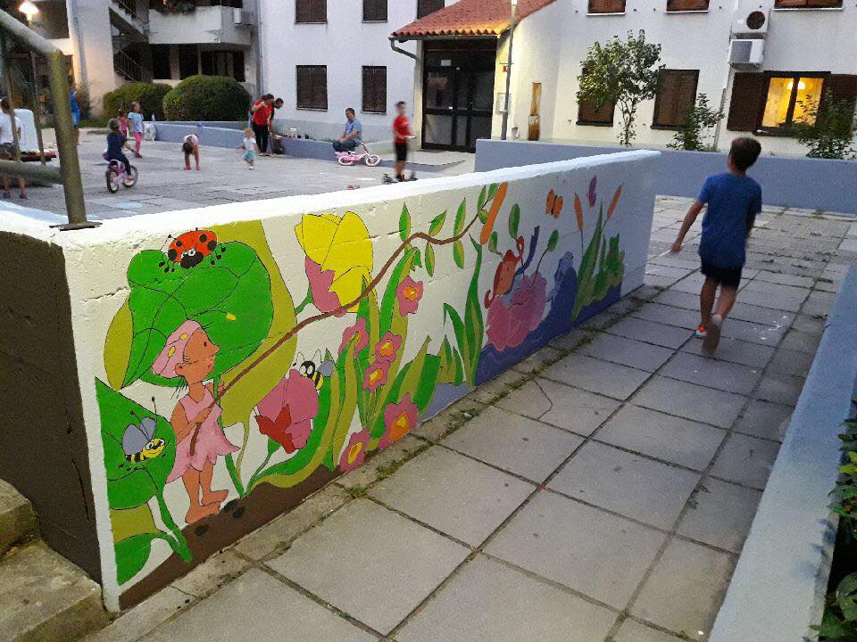 Otroci so dvoriščne zidove, ki jih je nedavno nazaj v okviru čiščenja zidov po vsej krajevni skupnosti izvajala Marjetica Koper, po navodilu Mestne občine Koper, spremenili v pravo slikarsko platno. Mestna občina Koper jim je pri tem priskrbela ves potreben material za poslikavo.