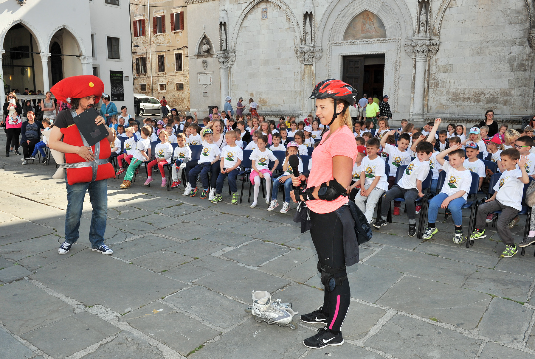 Kot že vrsto let je najmlajšim občanom Mestna občina Koper tudi letos ob občinskem prazniku podarila prijetno in doživeto dopoldne. Posebno pozornost so tokrat na duhovit način namenili varnosti pri rekreaciji in v prometu, predvsem pri kolesarjenju in rolanju, saj na koprski občini ugotavljajo, da so ravno najmlajši tudi najštevilčnejši uporabniki nove pridobitve – obalne ceste. Tako jim je nadvse “varno” opremljen Tomaž Klepač predstavil pravila varne vožnje in primerno opremo.