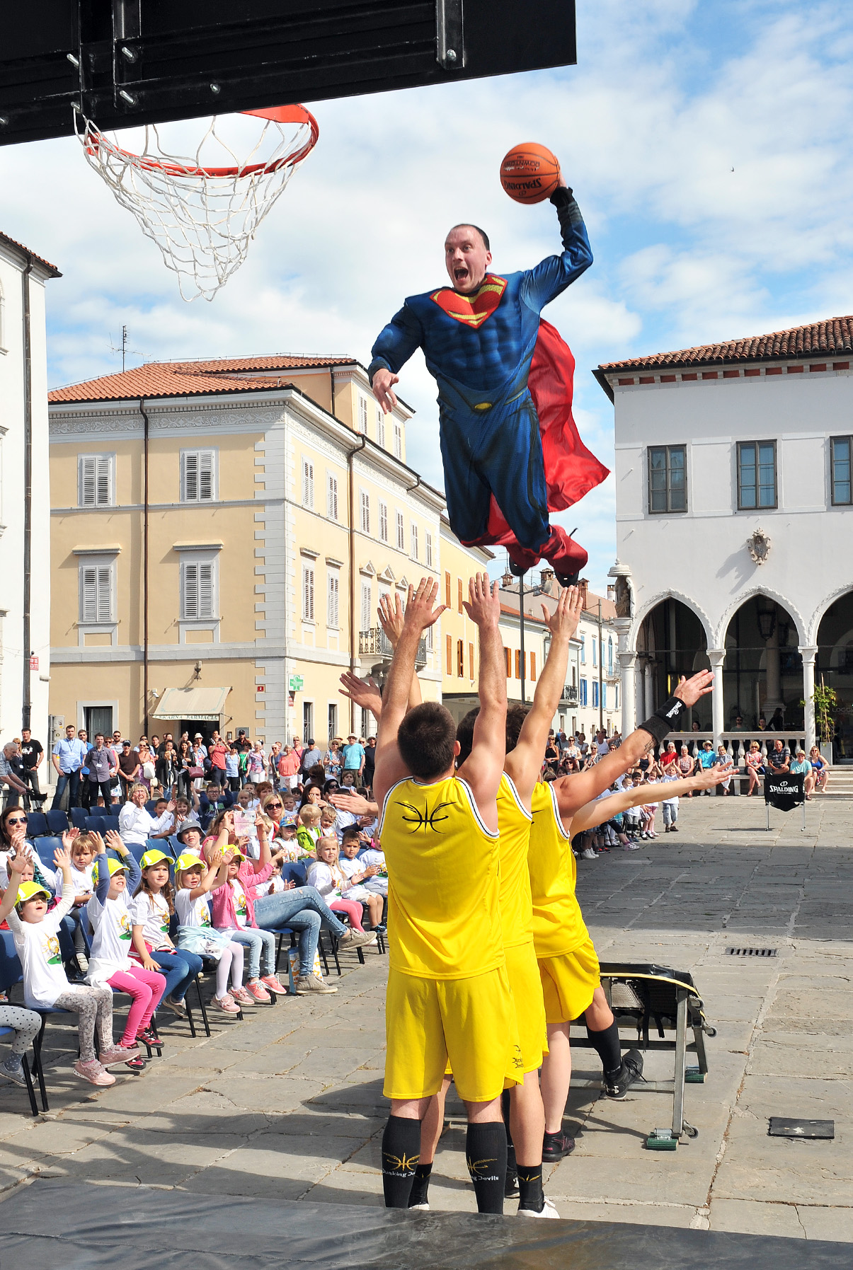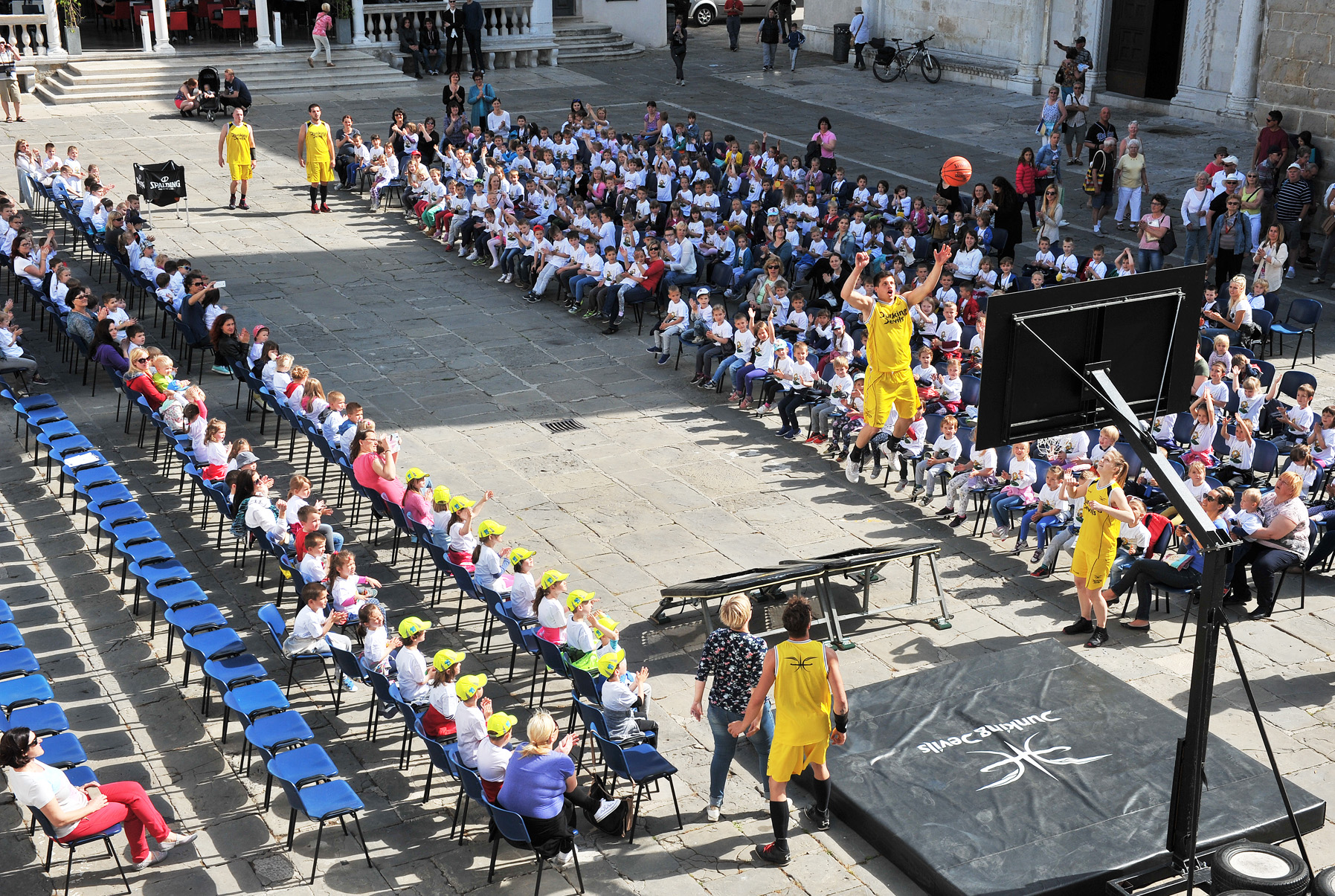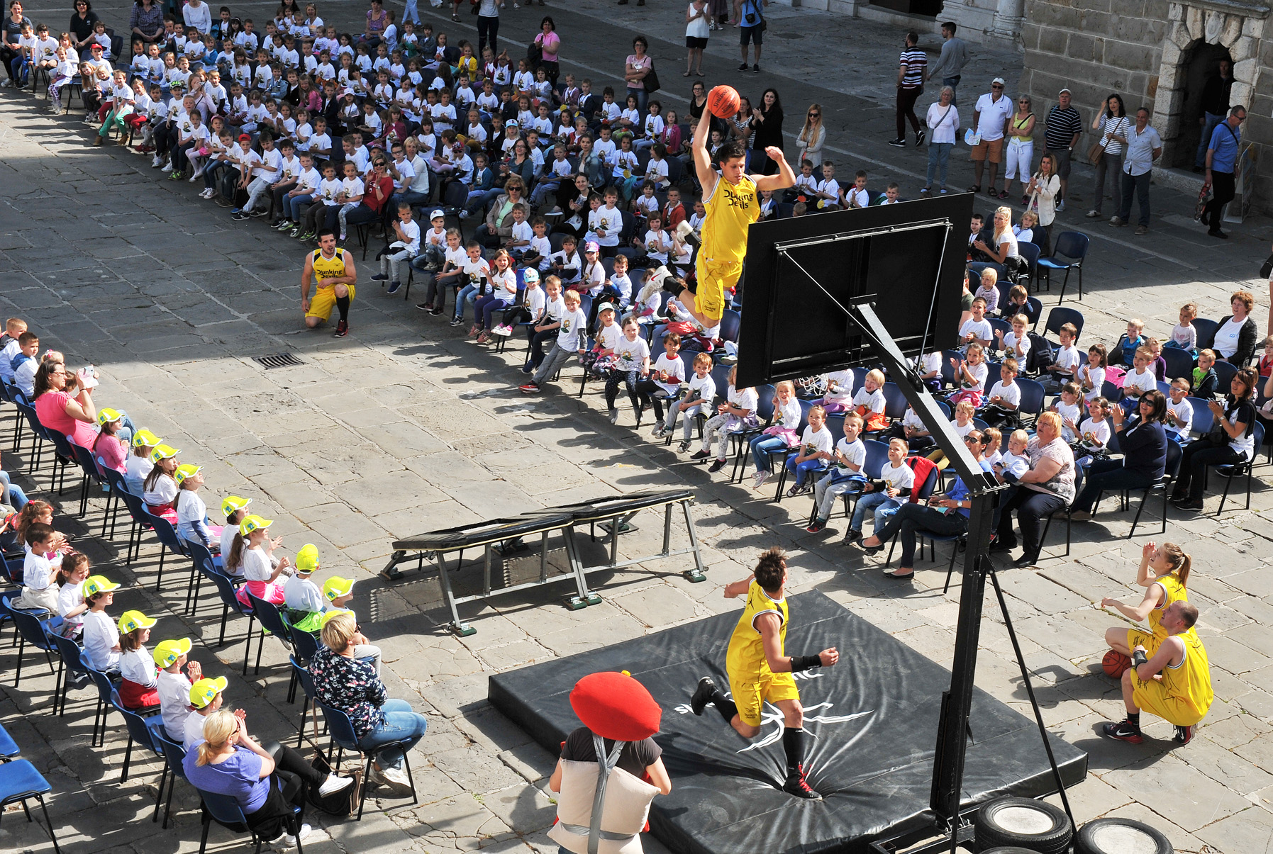 Prireditev se je zaključila v adrenalinskem duhu. Akrobatska skupina Dunking Devils je namreč navdušene otroke popeljala visoko proti modremu nebu z izvrstnimi akrobatskimi triki in meti na koš. *