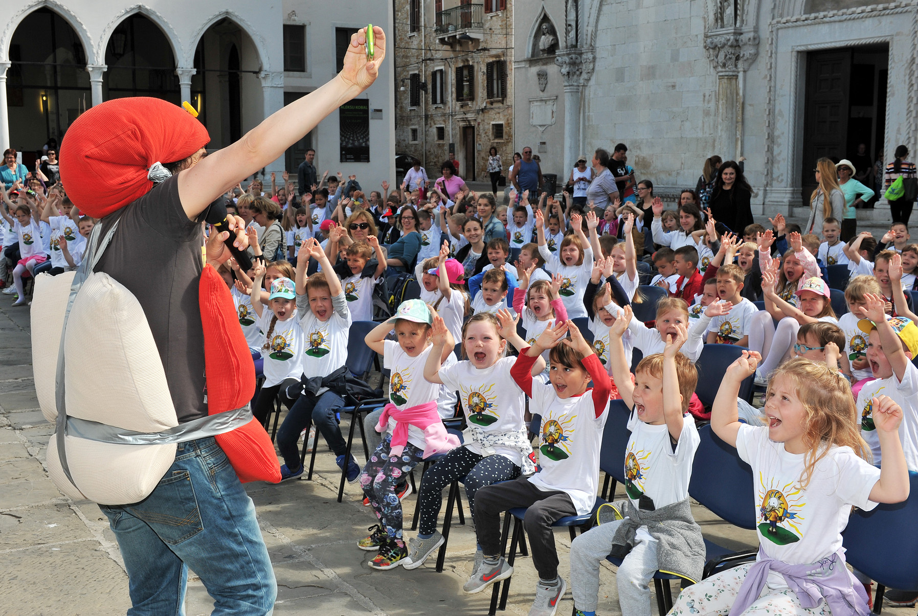 Danes je Titov trg preplavilo 750 otrok, ki so ob zabavnem, a hkrati poučnem programu poskrbeli za veselo in razigrano vzdušje ob prazniku Mestne občine Koper.