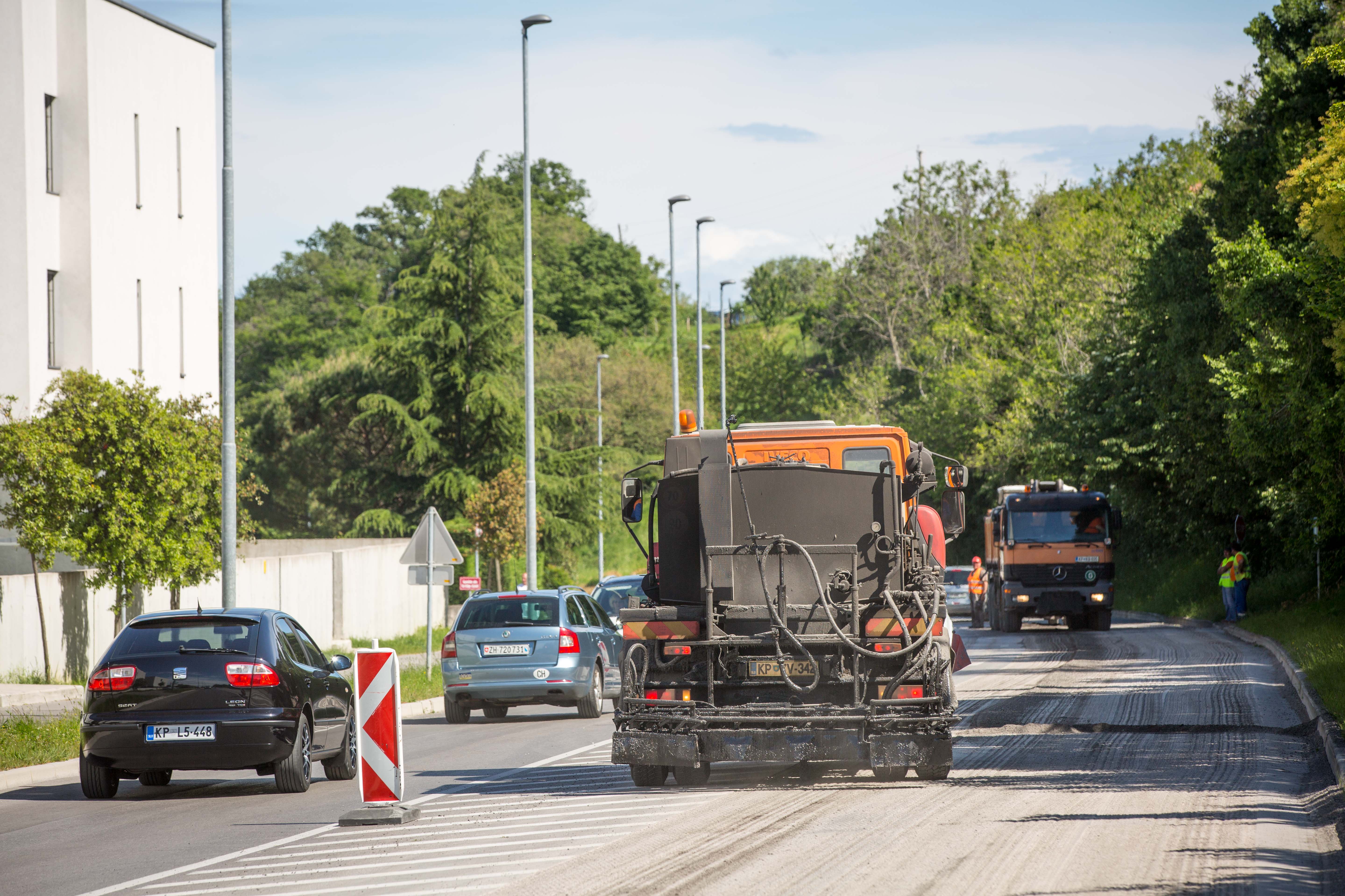 Delavci podjetja CPK so včeraj začeli z rezkanjem asfalta na delu cestišča od priključka za Semedelo 50 (ob občinski meji z Izolo) in stanovanjskim naseljem Nokturno.