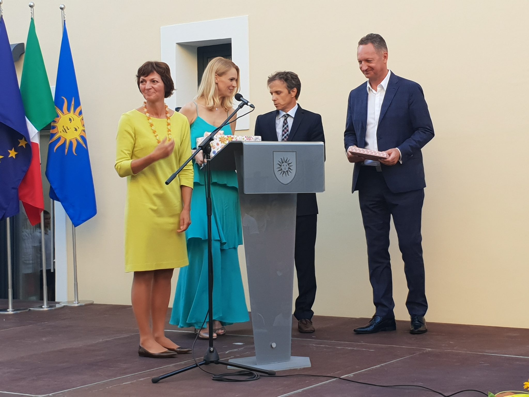 Današnje slovesnosti so se udeležili tudi ministrica za izobraževanje, znanost in šport Maja Makovec Brenčič, predsednik Italijanske Unije Maurizio Tremul, poslanec italijanske narodnosti v slovenskem parlamentu Felice Žiža, občinstvo pa na kratko nagovorila tudi ravnateljica vrtca Delfino Blu Monica Bertok in ravnatelj osnovne šole Pier Paolo Vergerio il Vecchio Guido Križman.