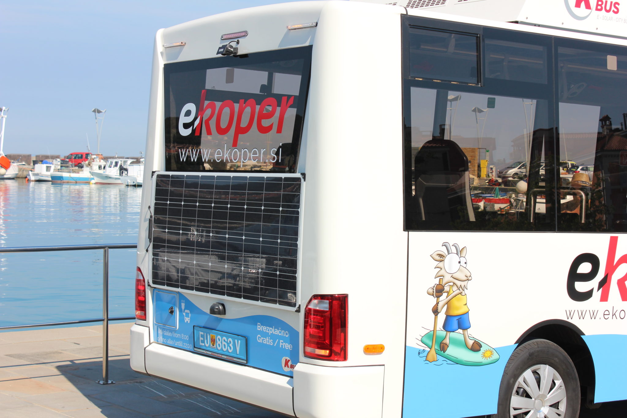 Prokurist družbe K-BUS, Marjan Kozel je predstavil tehnične značilnosti e-minibusa. Gre za 6,7 metrov dolg inovativen e-avtobus, ekološko čisto vozilo brez emisij izpušnih plinov, v katerem se bo po koprskih ulicah lahko prevažalo do 27 potnikov. E-minibus ima 16 sedišč in 10 stojišč ter eno mesto za invalide.