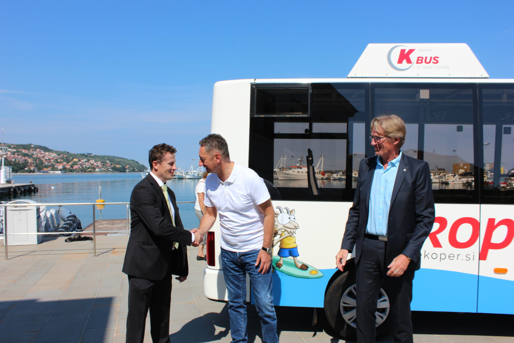 V koprskem mestnem potniškem prometu bosta od 10. julija do 31. avgusta na poletni liniji (Olmo – Žusterna – avtobusna postaja Koper –Žusterna – Olmo) poskusno vozila avtobusa na 100-odstotni električni pogon. Prav v ta namen pa so danes na ploščadi pri Upravi za pomorstvo, na nekdanji koprski avtobusni postaji, župan Mestne občine Koper, Boris Popovič, direktor in predsednik uprave skupine Arriva Slovenija, Bo Karlsson in prokurist družbe K-BUS, Marjan Kozel, predstavili novo izkušnjo električnih vozil v Kopru. Predstavitvi je sledila prva testna vožnja po poletni liniji.