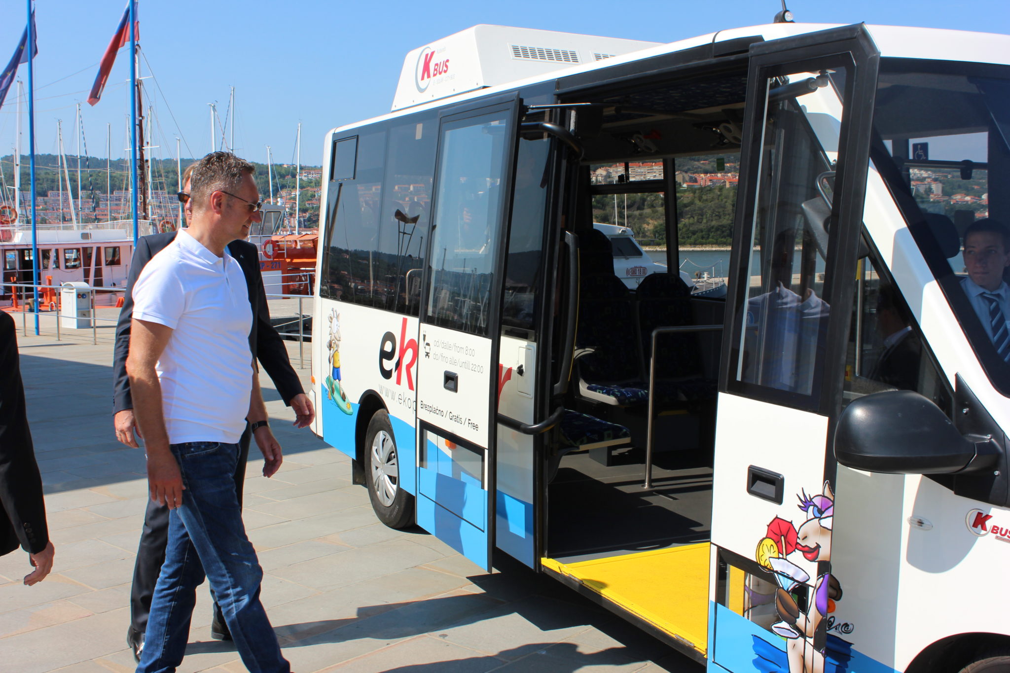 »Mestna občina Koper kot trajnostno naravnana občina, si skozi ves čas prizadeva, da uredi tudi področje javnega prevoza. Prav v ta namen smo pred časom posodobili vse avtobuse, danes pa prvič na naše ulice pošiljamo dva električna avtobusa. Upam, da si bomo lahko že v kratkem privoščili še več avtobusov na električni pogon in na ta način prispevali k zmanjšanju emisij in onesnaženosti okolja,« je zbrane nagovoril prvi mož koprske občine Boris Popovič in nadaljeval, da si »življenja v mestu in njegovi okolici, ki nima urejenega javnega prevoza, enostavno ne znam predstavljati. Prepričan sem, da bodo električna avtobusa uporabljali tako domačini kot tudi turisti.«