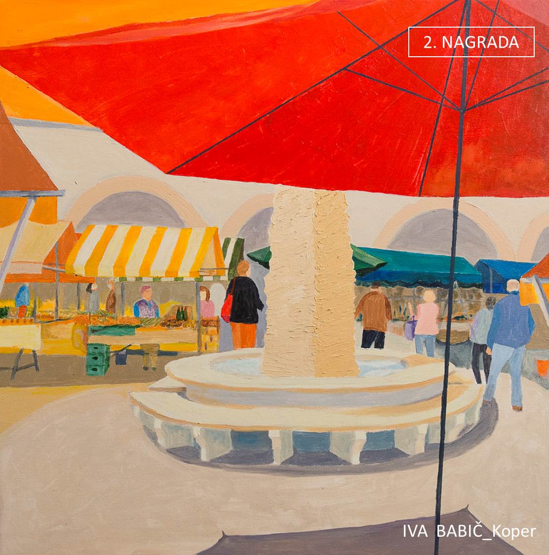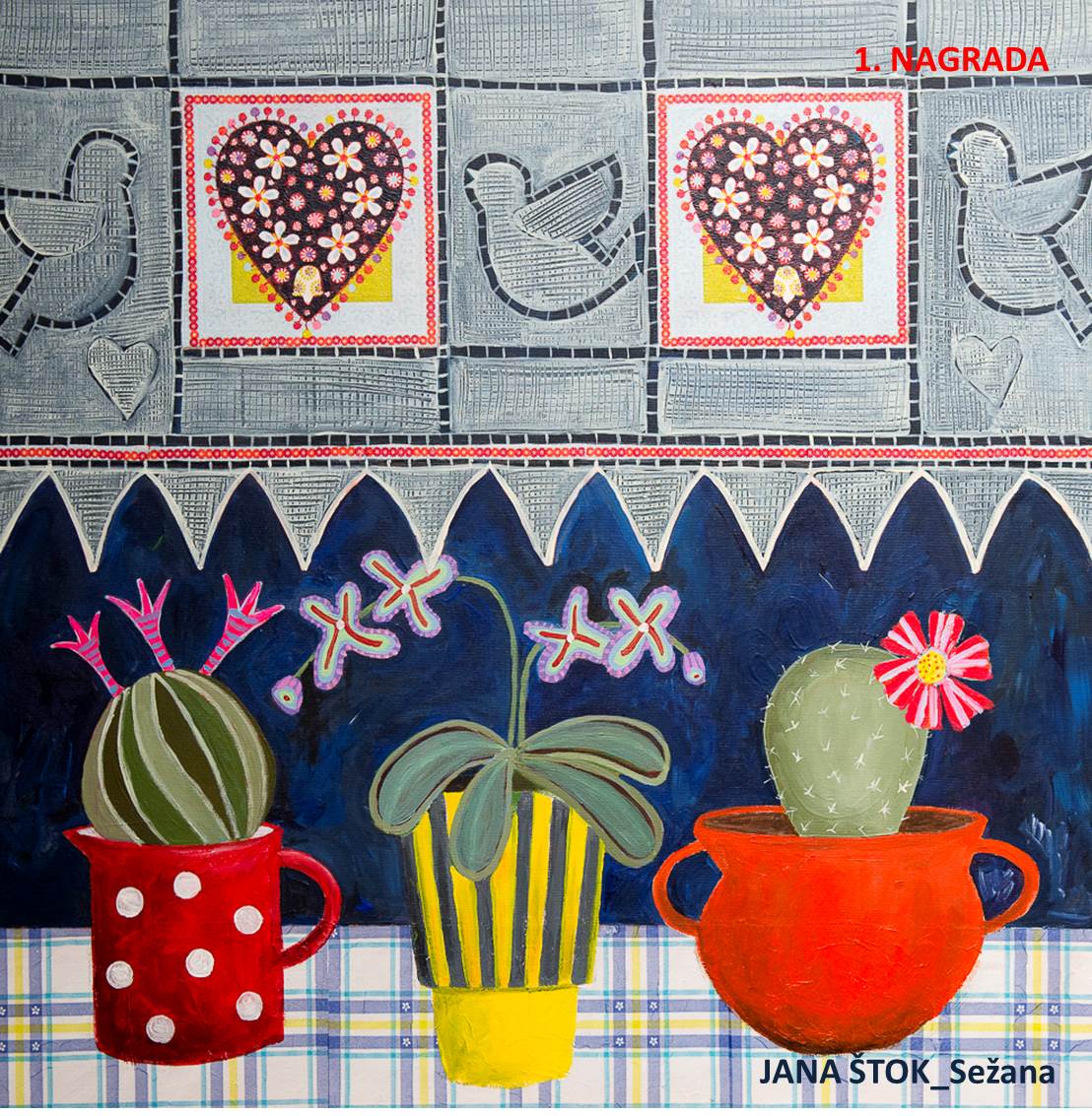 Zmagovalno delo Jane Štok iz Sežane odlikuje premišljena kompozicija, posluh za ritem in tonske vrednosti, detajle in celoto. Vesel značaj dela podkrepi sončen, rožni kolorit, so zapisali v obrazložitvi.