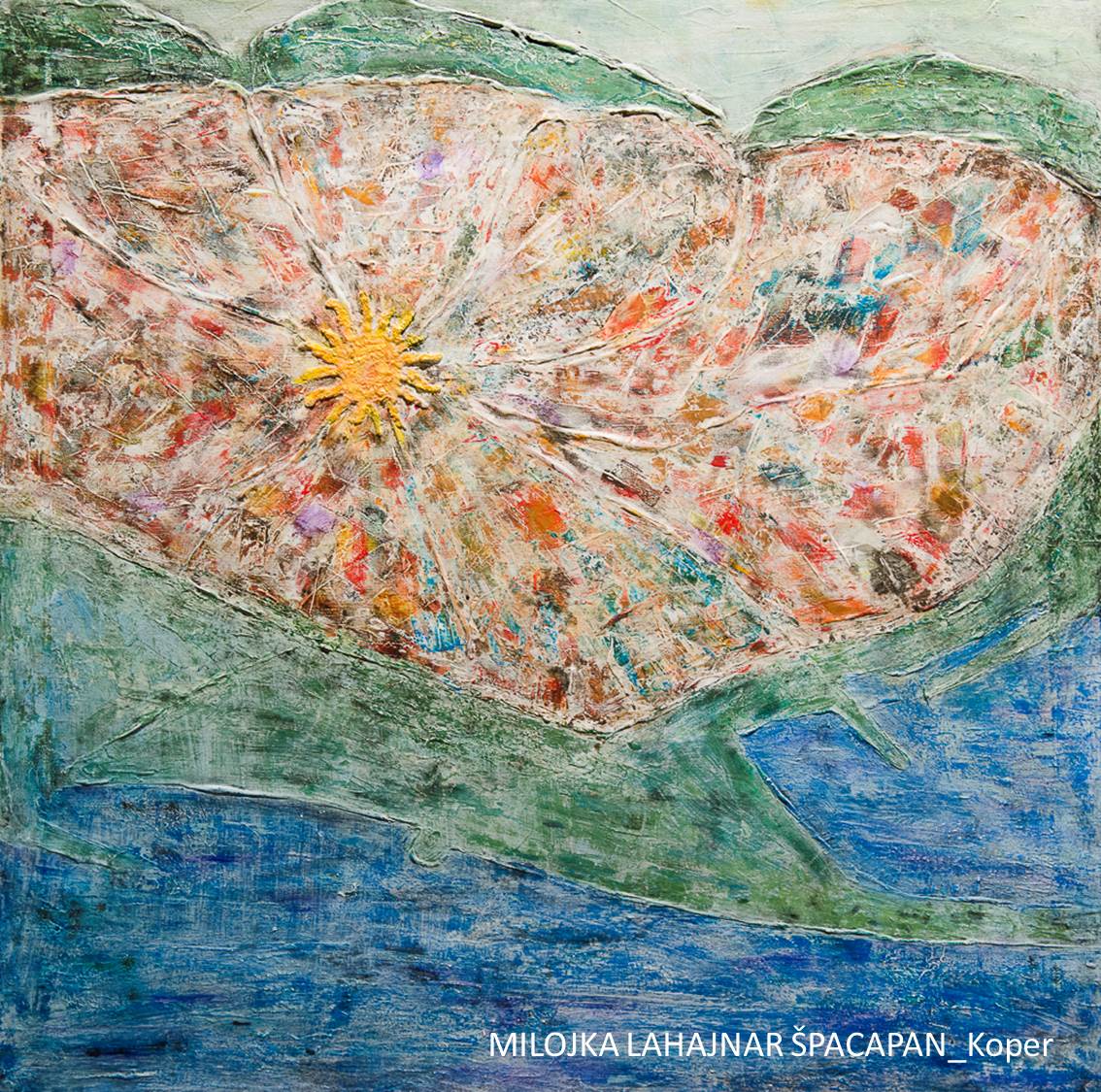 Sončen značaj drugo nagrajenega dela avtorice Ive Babič iz Svetega Antona odlikuje premišljeno zastavljena prostorska postavitev in cvetlični izbor barv, ki zavibrirajo v visokem tonu.