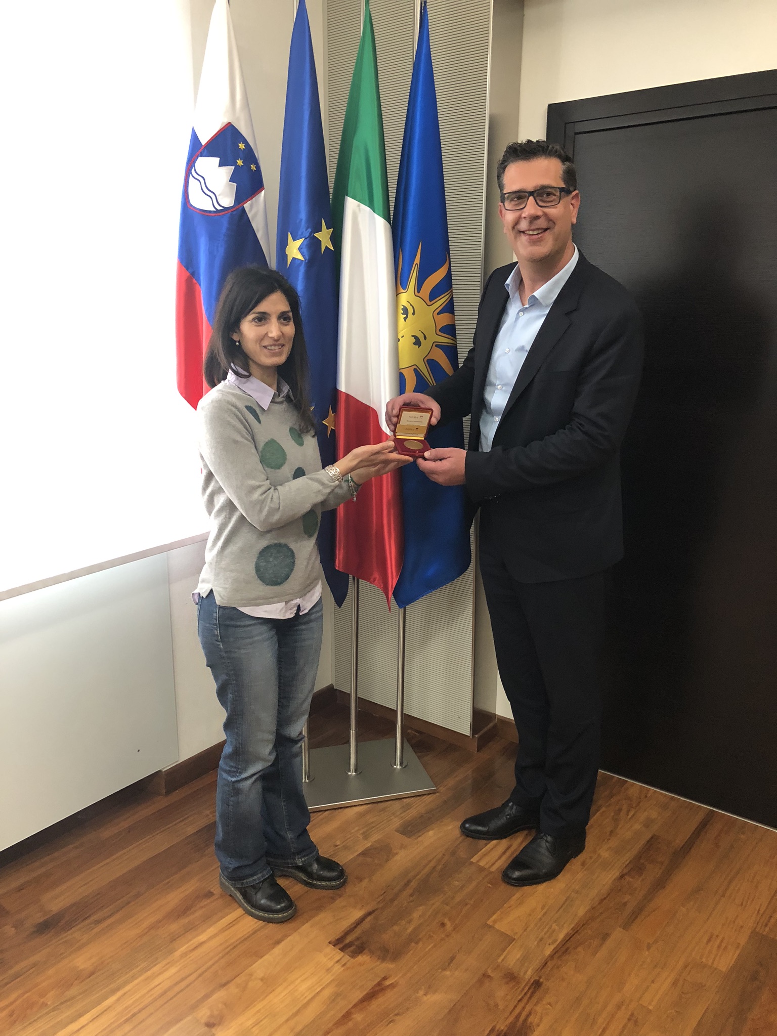 V torek, 9. aprila, je župan Aleš Bržan na obisku gostil Virginio Raggi, županjo italijanske prestolnice. Županja Raggi je na ekskurziji v Sloveniji in na Hrvaškem spremljala dijake rimskih srednjih šol, ki kraje ob vzhodni meji svoje države obiskujejo z namenom seznaniti se z zgodovinskimi dejstvi medvojnega in povojnega obdobja. Dijaki so obiskali Kostnico v Sredipolju (Sacrario di Redipuglia), fojbo v Bazovici, Rižarno v Trstu, skladišče št. 18 v Trstu in druge zgodovinske kraje.