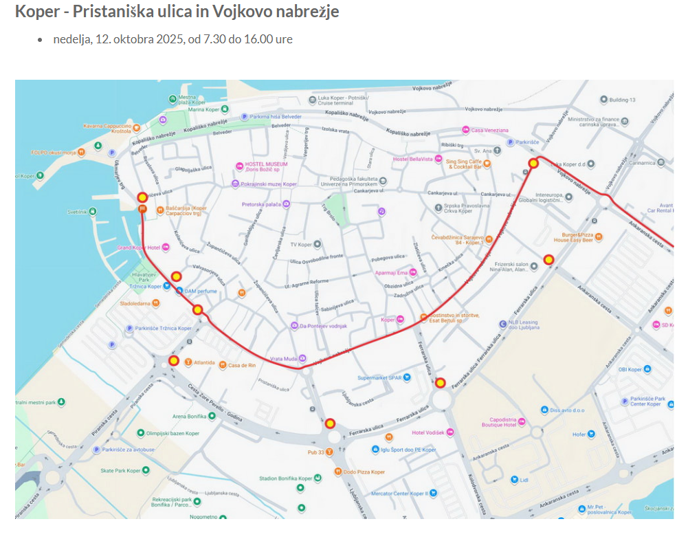 Zaradi izvedbe dogodka bodo v soboto, 11. oktobra, in v nedeljo, 12. oktobra, zaprte nekatere ceste v središču Kopra in na podeželju Mestne občine Koper.
