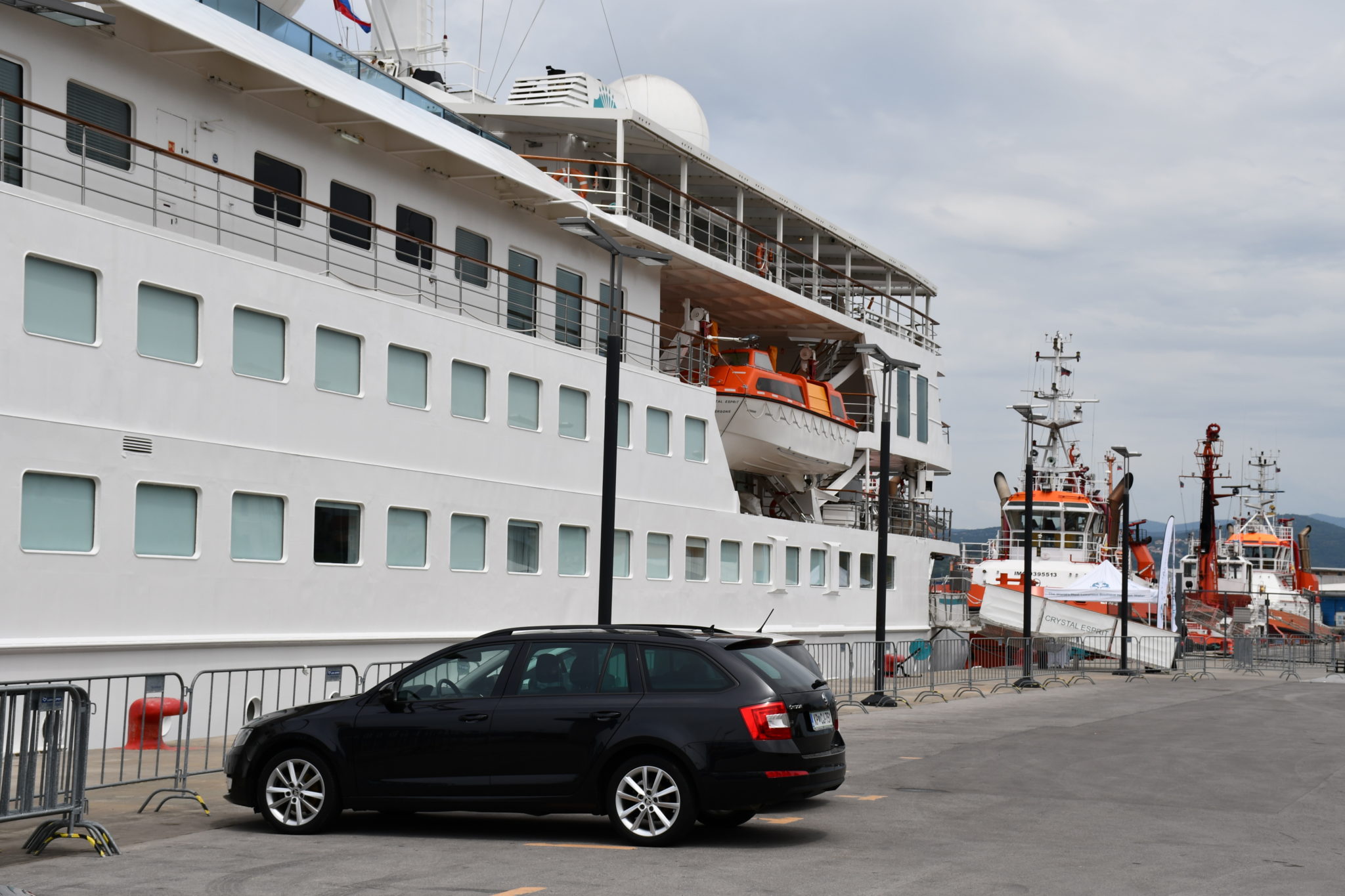 Crystal Esprit, prva v vrsti luksuznih super jaht, ki jih proizvaja podjetje Crystal Yacht Cruises, je k nam je pripeljala 60 potnikov, ti pa so si z navdušenjem ogledali naše mesto.
