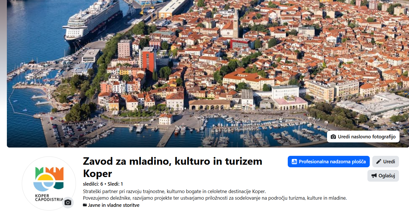 Zavod za mladino, kulturo in turizem Koper je vzpostavil novo uradno Facebook stran, namenjeno poslovni javnosti. Novi poslovni profil je zasnovan kot prostor povezovanja, obveščanja in krepitve partnerstev med lokalnimi ponudniki, ustvarjalci, podjetji in drugimi deležniki.