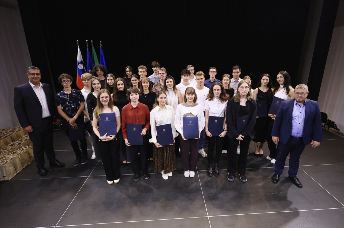 Župan je najuspešnejšim srednješolkam in srednješolcem izročil posebno priznanje in darilce ter jim zaželel, naj bo njihov dosežek spodbuda, da vedno verjamejo vase in pogumno stopajo na pot novih izzivov.
