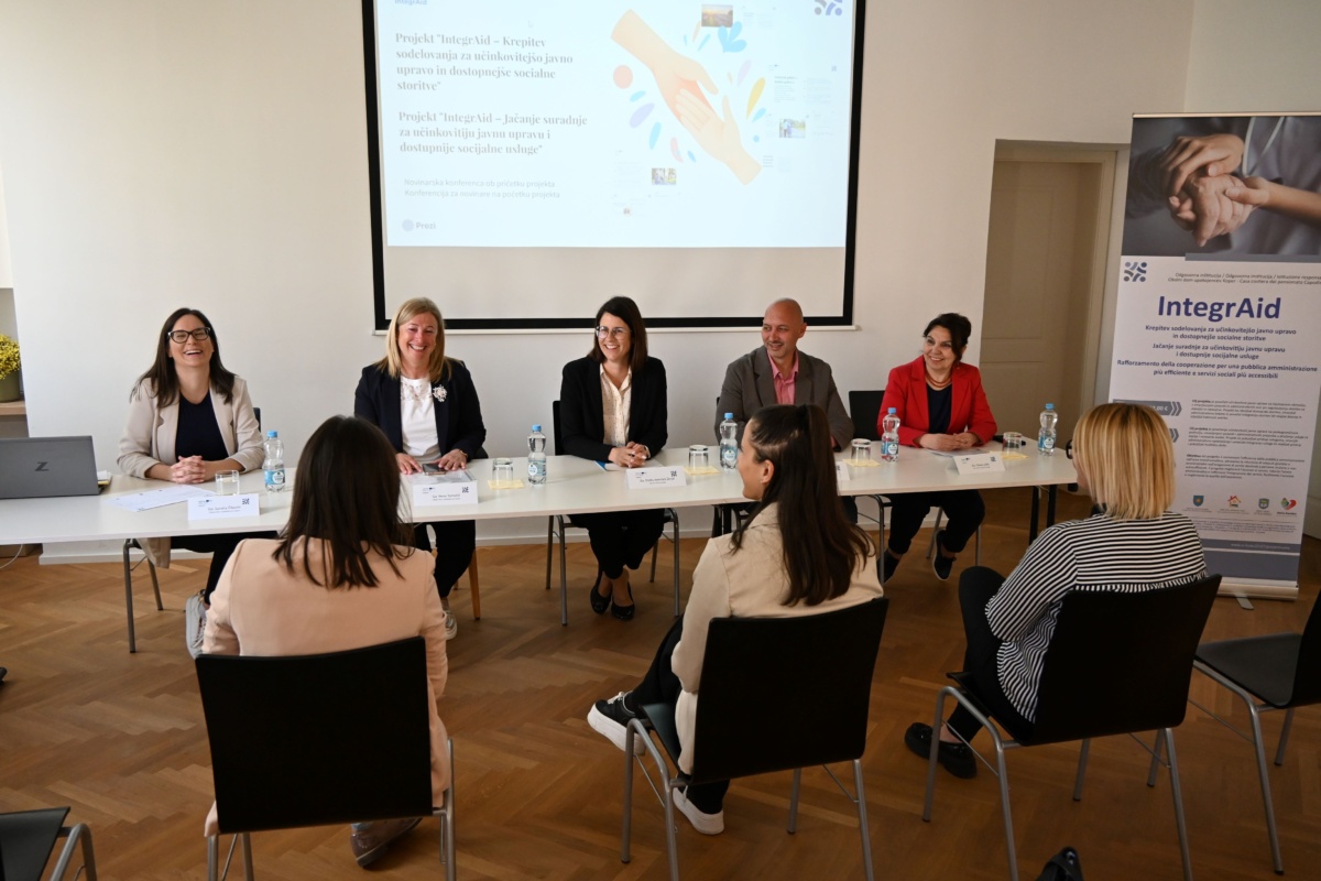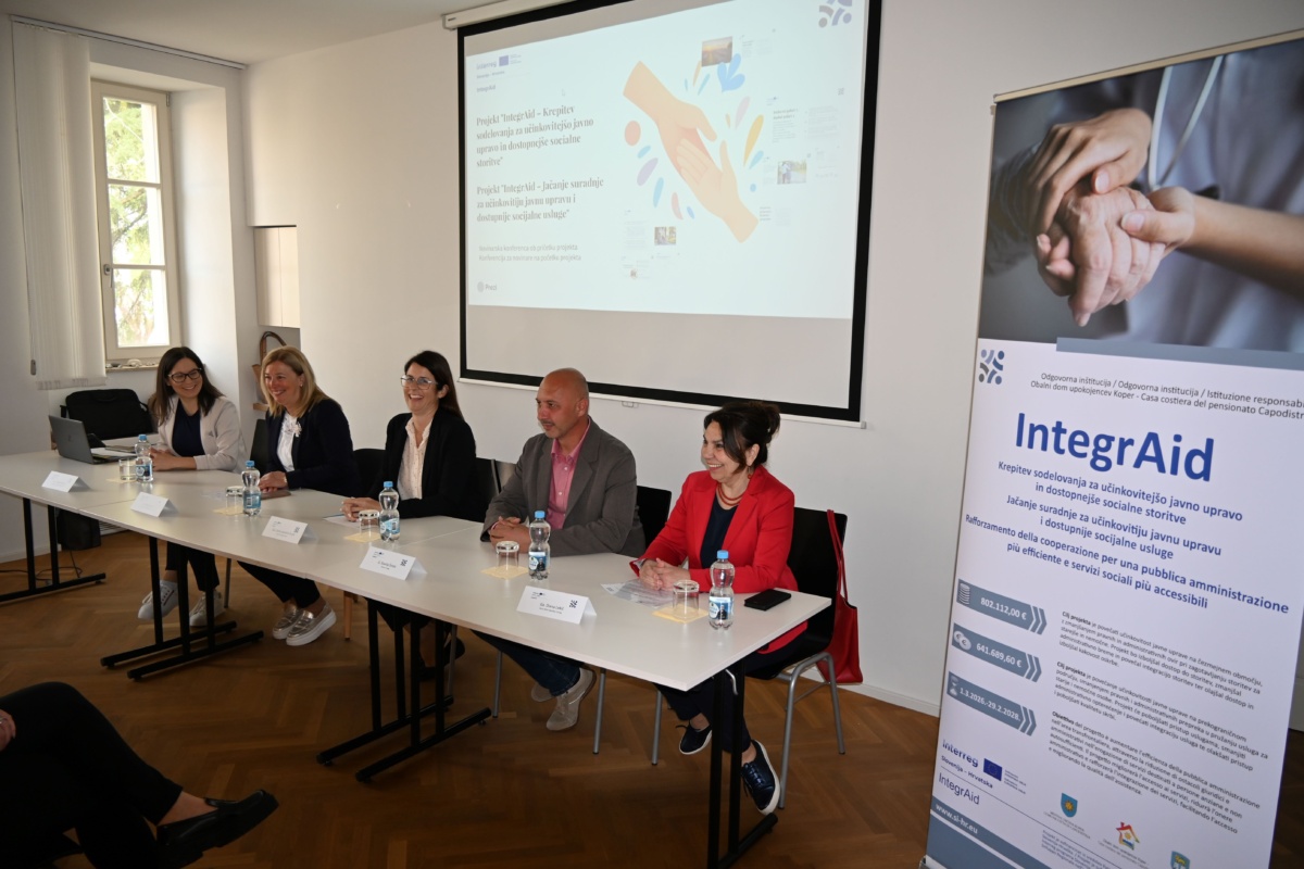 V Kopru je danes potekala novinarska konferenca ob predstavitvi projekta IntegrAid – krepitev sodelovanja za učinkovitejšo javno upravo in dostopnejše socialne storitve, ki se izvaja v okviru programa Interreg Slovenija – Hrvaška 2021–2027.