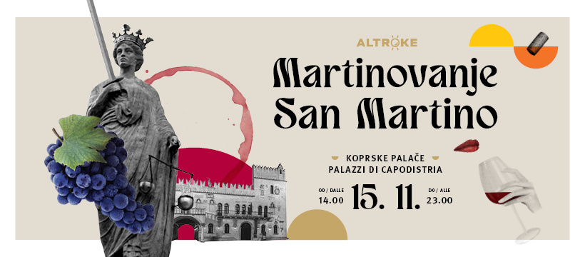 Po zelo uspešni lanski premierni izdaji se v soboto, 15. novembra, v koprske palače ponovno vrača Altroke martinovanje. Prireditev v organizaciji Zavoda za mladino, kulturo in turizem Koper združuje vrhunsko vinsko ponudbo, bogato mestno arhitekturno dediščino in poseben spremljevalni kulturno-zabavni program. Veliki zaključek bo tudi letos v atriju Pretorske palače, kjer se bodo vinarji pomešali med obiskovalce, glasbeni takt sproščenemu druženju pa bo dajal Teo Collori trio.
