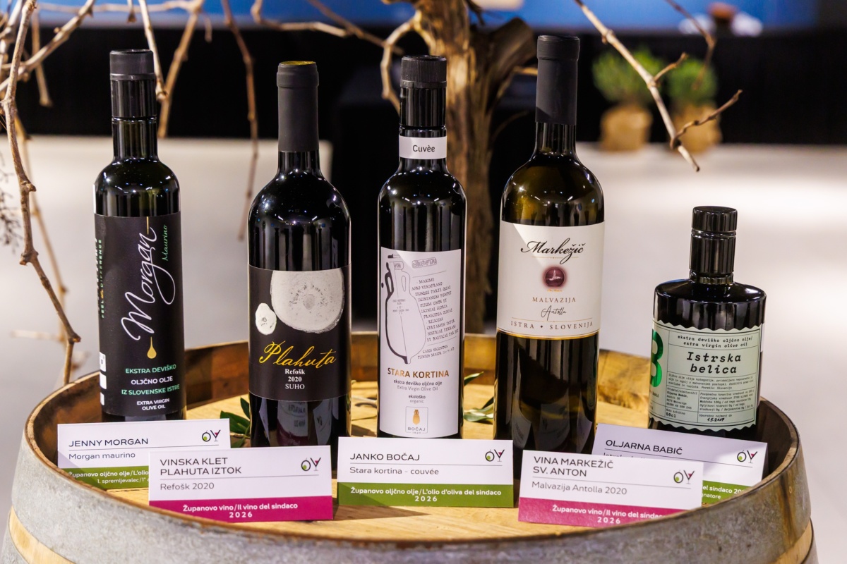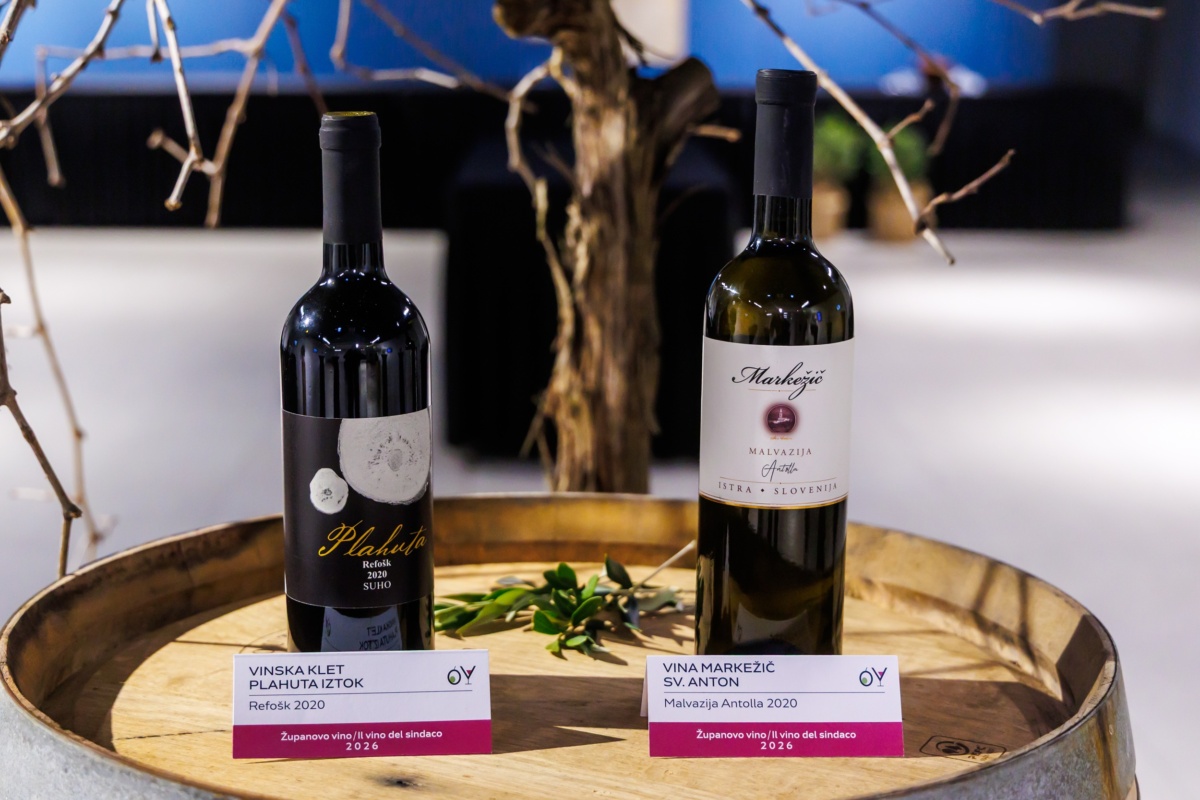 Malvazija Ventis 2020 iz kleti Vina Markežič Sv. Anton in Refošk 2020 iz Vinske kleti Plahuta Iztok sta letošnja nosilca naslova Županovo vino 2026. Županovo oljčno olje 2026 je postalo oljčno olje Stara Kortina Cuvée oljkarja Janka Bočaja. Podelitev nazivov je potekala drevi v Pokrajinskem muzeju Koper.