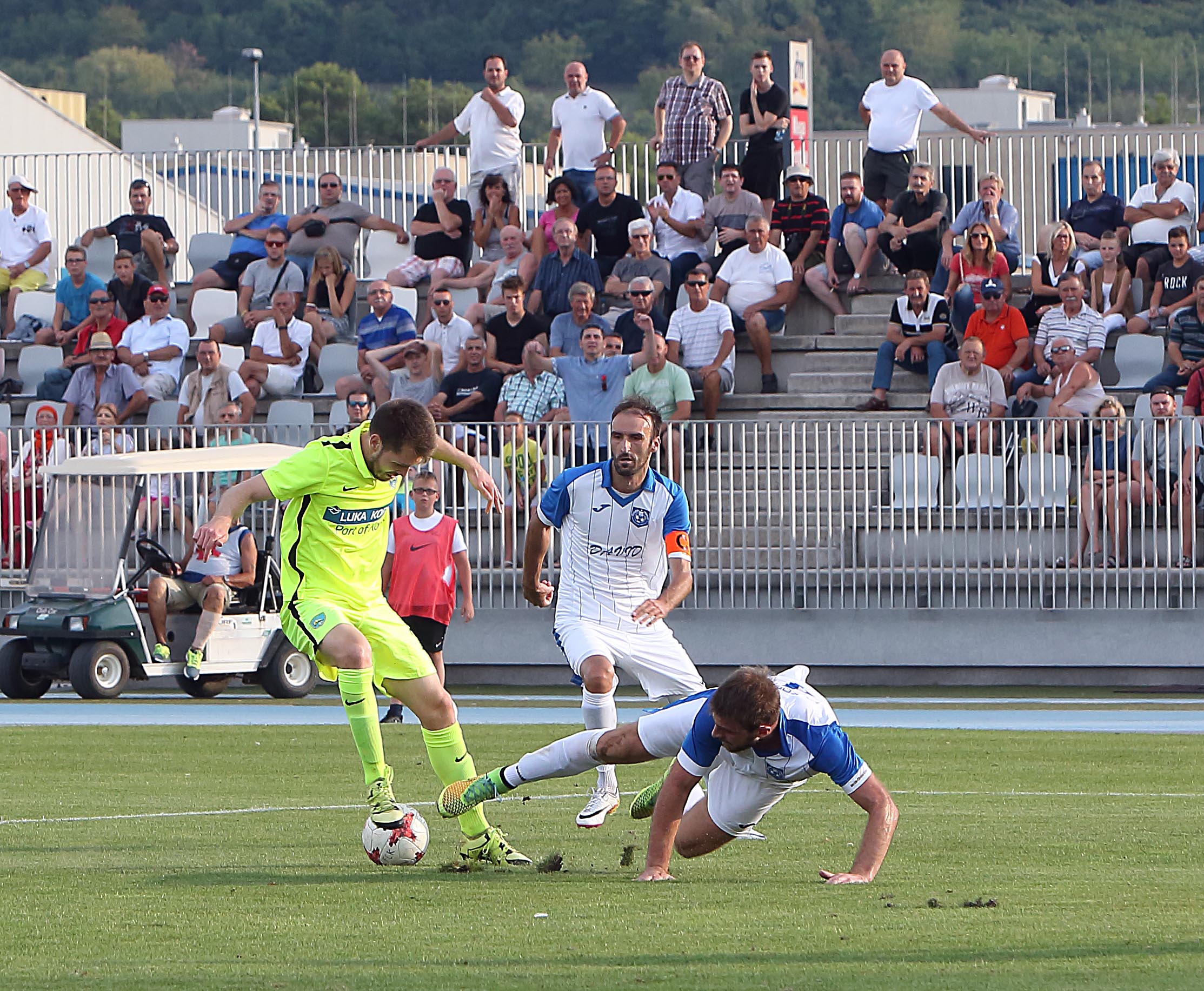 Koprčani so vidno gospodarili na igrišču in v izdihljajih prvega polčasa v 44. minuti le prišli do prednosti. Zagotovil jo je Jan Jerman, ki je z velemojstrskim lob udarcem navdušil številčno publiko in tako poskrbel za vodstvo domačih.