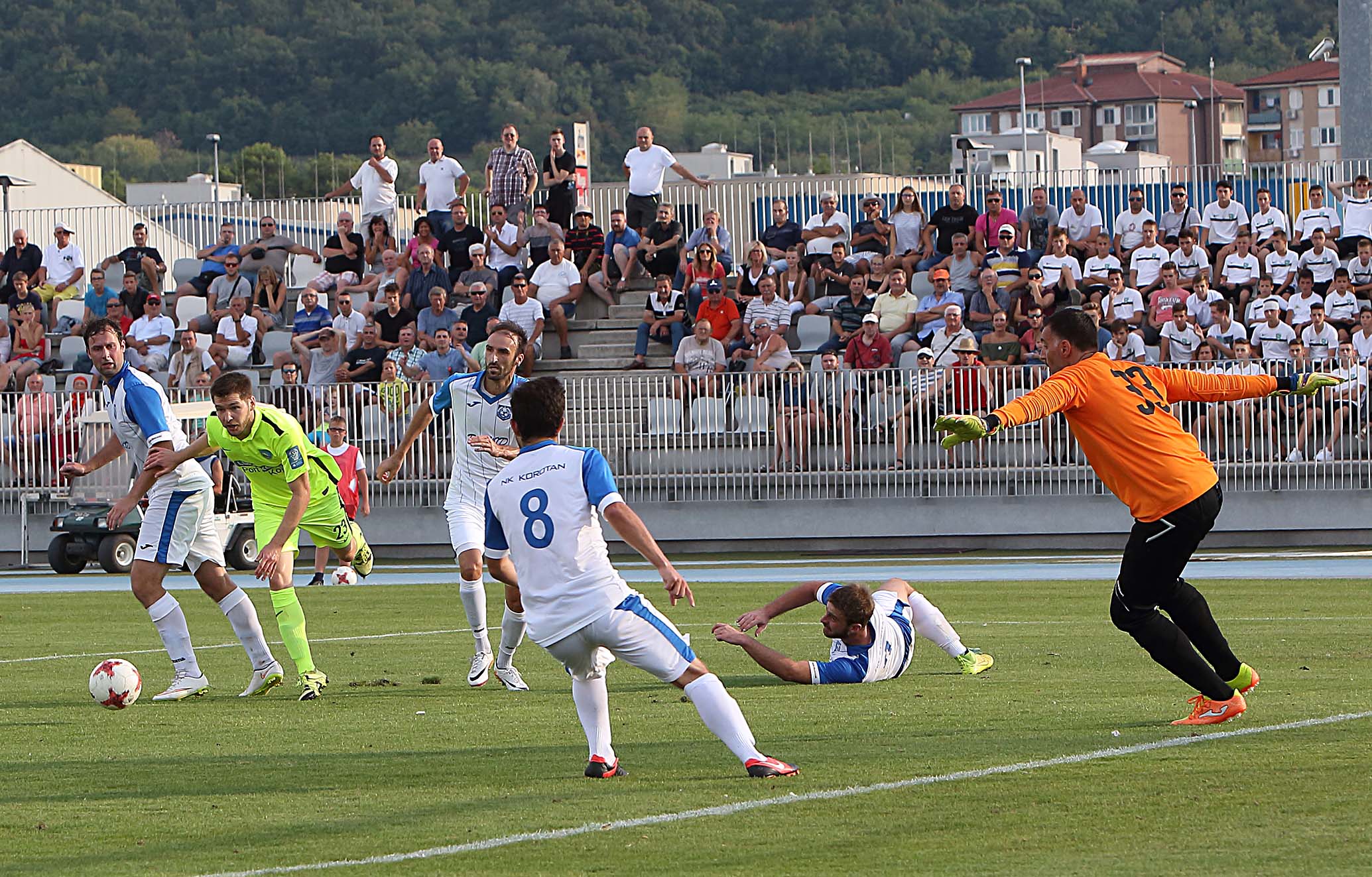 V toplem koprskem večeru sta se na tekmi prvega kroga slovenskega pokala na atletskem stadionu pred približno 450 gledalci pomerili ekipi FC Kopra in Korotana iz Prevalj. Po začetnem otipavanju so se prvi opogumili Koprčani, ki so svoje priložnosti iskali preko Aleksandarja Gavrića in Marka Krivičića. Slednja nista uspela zatresti mreže, še najbolj blizu zadetku pa je bil Mark Klarić, ki je po pravem malem fliperju v kazenskem prostoru sprožil proti vratom, a je žogi pot v mrežo na golovi črti preprečil obrambni igralec gostujoče ekipe iz severa Slovenije. Kasneje se je mlademu Klariću znova ponudila lepa priložnost po dobri globinski podaji, a ga je z odlično obrambo znova zaustavil razpoloženi vratar gostov.