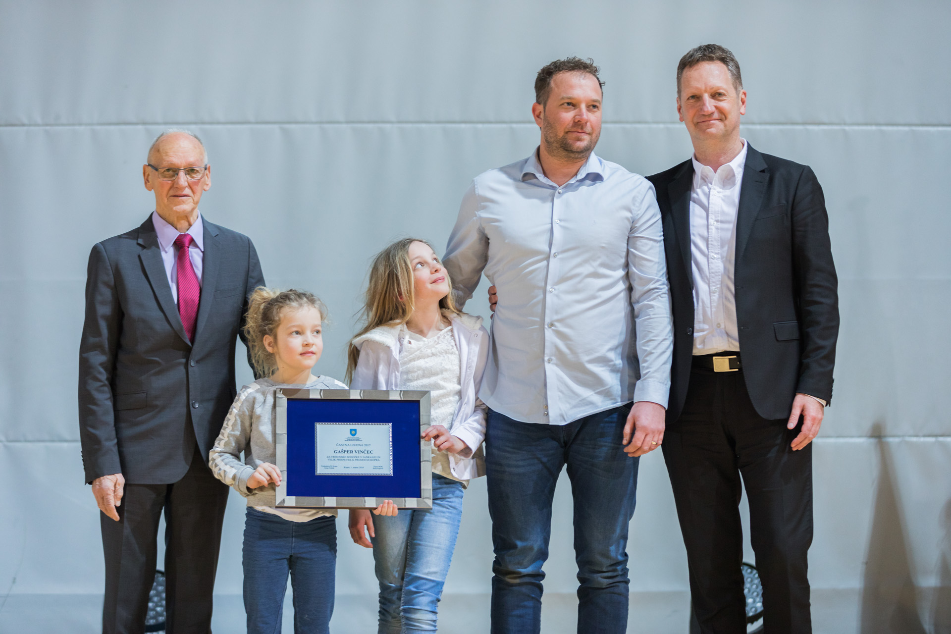 Častno listino je za vrhunske dosežke v jadranju in velik prispevek k promociji Kopra v letu 2017 prejel Gašper Vinčec, dolgoletni in najuspešnejši koprski jadralec, ki je bil kar 8 krat proglašen za najboljšega koprskega športnika. Dvarkatni udeleženec na olimpijskih igrah (v Atenah 2004 in Pekingu 2008), kjer je dosegel tudi odlično 7. mesto. Več kot 20 let je bil na samem vrhu najboljših jadralcev v olimpijski disciplini enosedu Finn, na svetovnem prvenstvu na Portugalskem je bil leta 2007 bronast, leta 2005 pa je na evropskem prvenstvu na Švedskem osvojil srebro. Prejel je številna priznanja, med drugimi tudi najvišje priznanje Mestne občine Koper 15. maj in prestižno priznanje za fair play potezo leta, ki mu jo je podelilo Društva novinarjev Slovenije na svečani prireditvi Športnik Slovenije. Gašper je vsa leta njegove tekmovalne kariere ostal zvest Kopru in svoj kraj promoviral celemu svetu in ga zato uvrščamo med največje ambasadorje svojega kraja.
