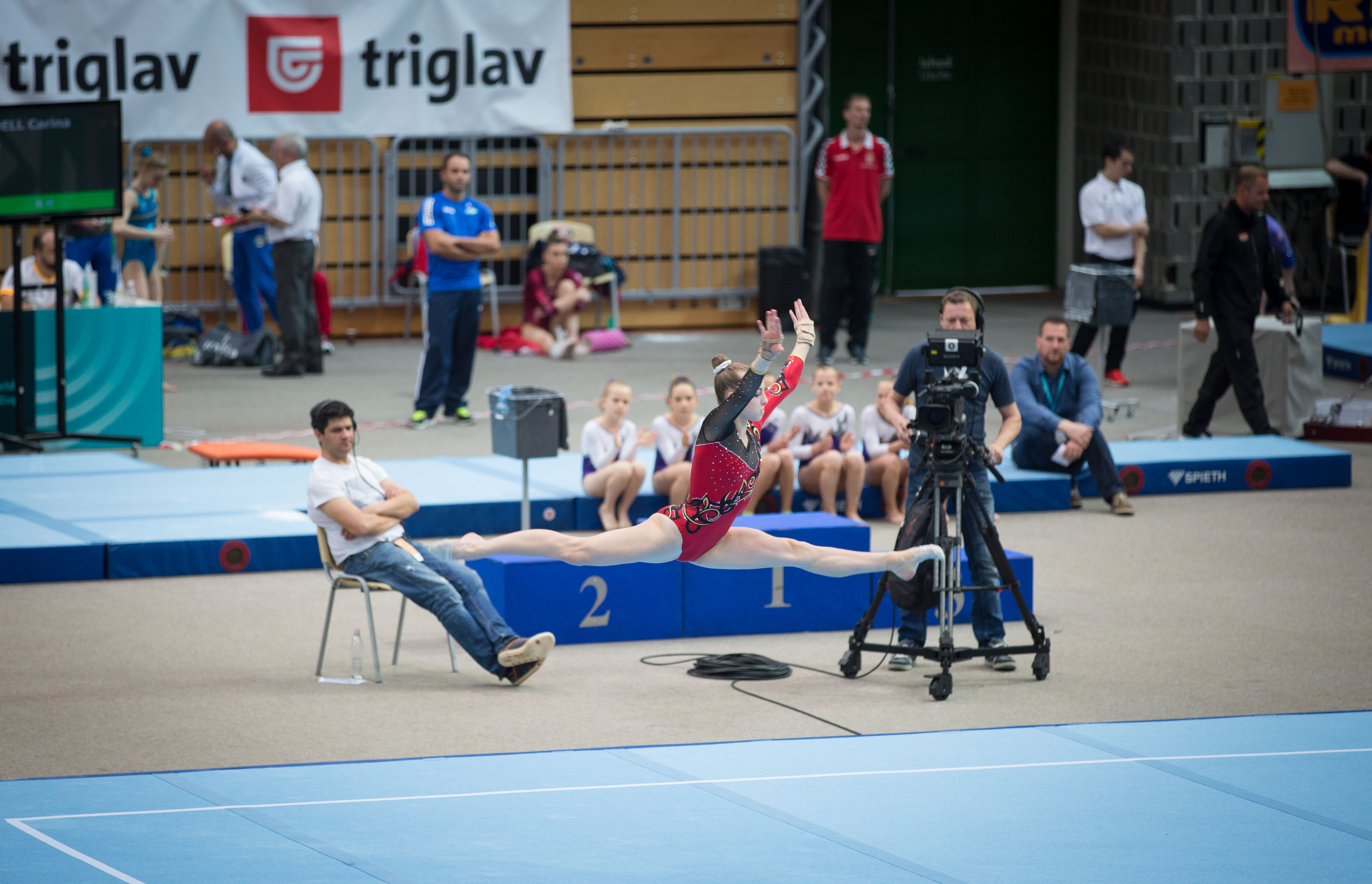 Telovadke so se najprej pomerile na gredi, kjer je vse pričakovano za seboj pustila Romunka Larisa Andreea Iordache, bronasta z zadnjega EP na tem orodju je za svojo sestavo prejela oceno 14,150.